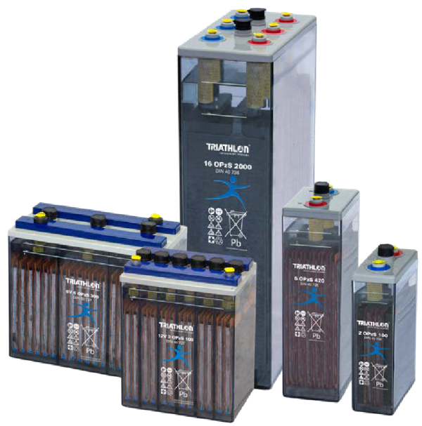 Las Baterías TRIATHLON OPzS son baterías de plomo selladas, de larga duración y comprobada fiabilidad, ideales para aplicaciones exigentes. Soportan altas cargas cíclicas y operan eficientemente en altas temperaturas o redes eléctricas inestables. Son perfectas para sistemas de suministro de energía, respaldo de seguridad, telecomunicaciones y almacenamiento de energía renovable.